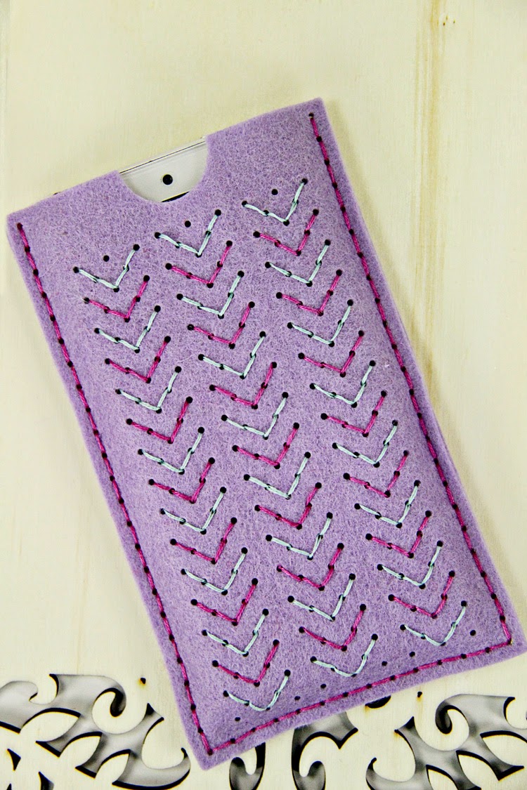 On this Phone Case, I cut another border from the Embroidered Borders Die Collection three times and stitched up the pattern in alternating "v's". Really a great look.